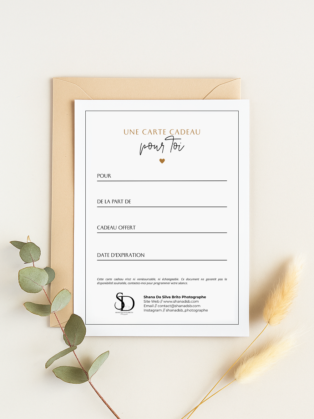 La carte cadeau est valable pendant 1 an à compter de la date d’achat.